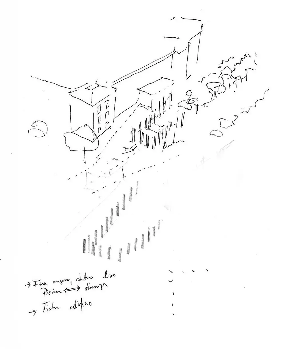 Establecemos una resonancia entre nuestro proyecto y los soportales de Santiago que te protegen de las inclemencias del tiempo, creando una relación de identidad local por su ritmo, materialidad, luces y sombras y establecen un límite difuso entre el interior y el exterior; al igual que lo hacemos entre la vida pública y el gobierno gallego.