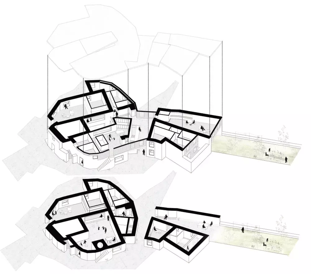 Parada do Sil quiere revertir el éxodo rural y convertirse de nuevo en un lugar de vida y convivencia. Proyectamos un lugar de estancia amable y acogedor para el uso de quienes ocupen las viviendas y que fomente los momentos de reunión es ese espacio central que es el corazón del proyecto.